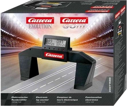 Vylepšete svou autodráhu CARRERA s elektronickým počítadlem kol pro řady GO a EVOLUTION. Zařízení spolehlivě zaznamenává každý průjezd díky světelné bariéře, umožňuje nastavit závod na přesný počet kol nebo určitý čas a poskytuje detailní časy s přesností na 1/100 sekundy.
