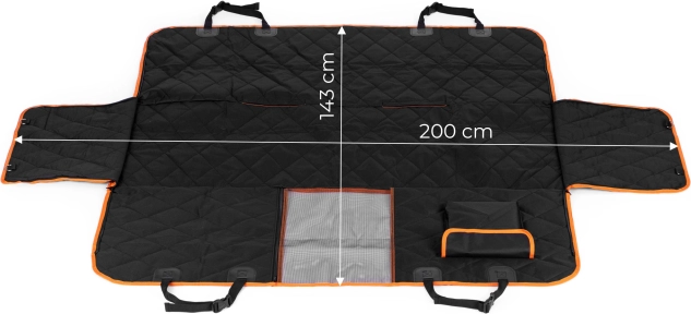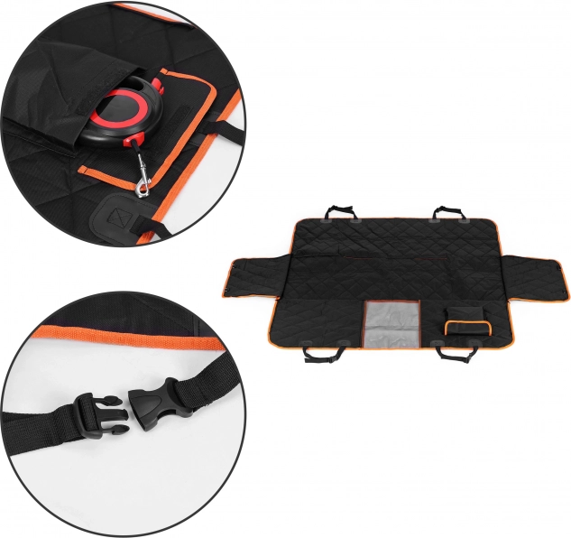 Univerzální autopotah PETSI chrání čalounění před srstí, vlhkostí a nečistotami. Díky voděodolnému materiálu, protiskluzové spodní straně a upevnění popruhy pokrývá celou zadní lavici a opěradla, drží na místě a nabízí bezpečí i pohodlí pro vašeho mazlíčka. Praktická kapsa na drobnosti a snadná instalace z něj dělají ideální řešení na cesty.