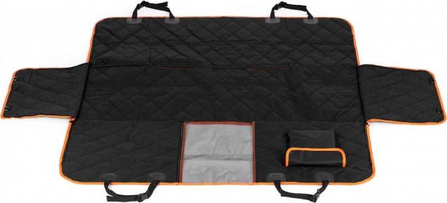 Potah PETSI pokrývá celou zadní lavici i zadní části předních sedadel, chrání před vlhkostí, blátem i srstí. Díky odolné prošívané konstrukci je pohodlný pro mazlíčka a šetrný k interiéru vozu.