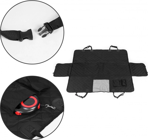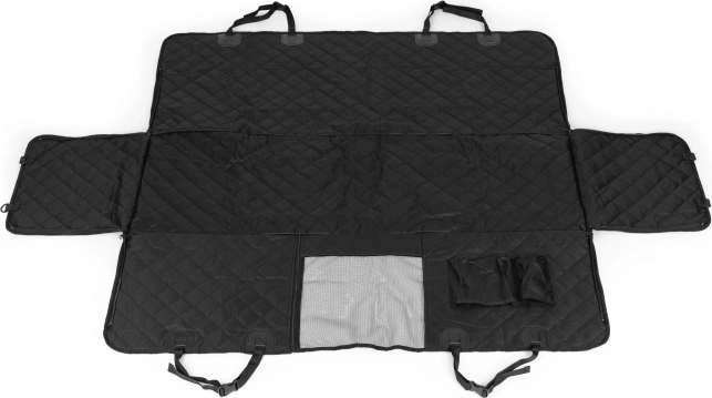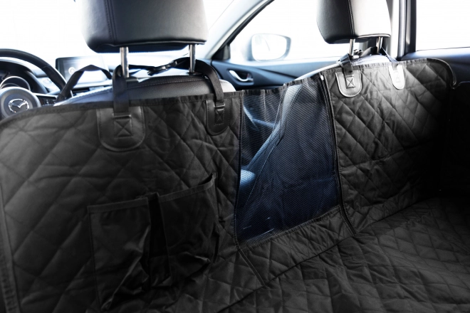 Prošívaný, odolný potah kryje celou zadní lavici a chrání čalounění před chlupy, blátem i poškrábáním. Dvě kapsy udrží vodítko, pamlsky a drobnosti vždy po ruce.