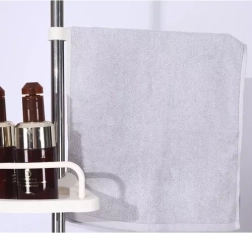 Police jsou vyrobeny z odolného PP s hladkým povrchem, který se snadno čistí, a mají drenážní otvory pro rychlý odtok vody. Sloupek z nerezové oceli s prvky z PET a silikonu je stabilní a odolný vůči vlhkosti. Každou polici lze libovolně výškově posouvat a otáčet kolem osy, takže si rozložení snadno přizpůsobíte vlastním potřebám. Montáž je rychlá a bezpečná díky rozpěrnému mechanismu s gumovými koncovkami – bez vrtání a bez poškození obkladů.