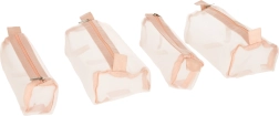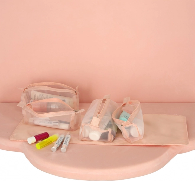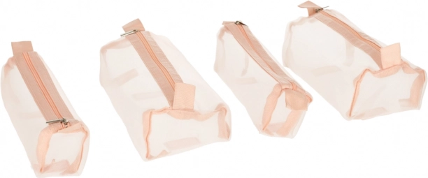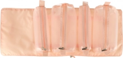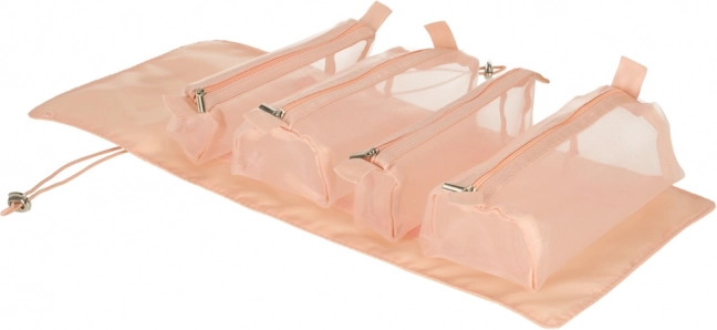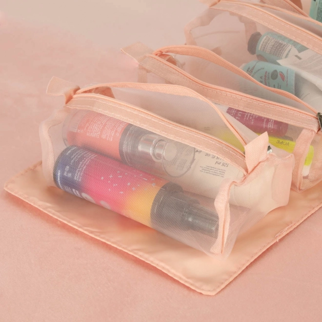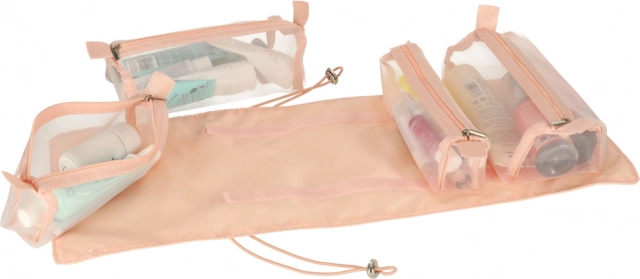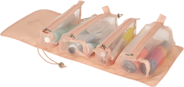 Tato růžová kosmetická taška je navržena pro ty, kteří hledají pohodlí a efektivitu při organizaci svých kosmetických produktů na cestách. Taška je vybavena čtyřmi průhlednými zipovými přihrádkami, které umožňují snadný přístup a viditelnost obsahu. Přihrádky jsou plně odnímatelné, což přináší vysokou variabilitu použití.