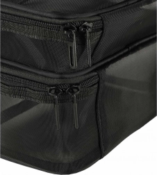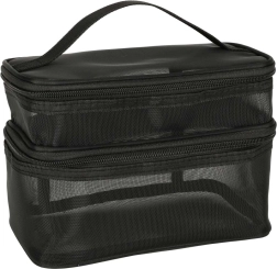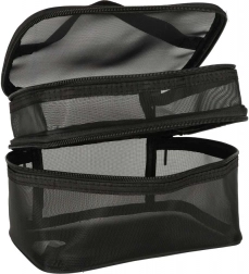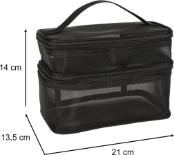 Cestovní kosmetická taška je nezbytností pro každou cestu. Díky dvouúrovňové konstrukci umožňuje organizovaný přehled a uložení kosmetických potřeb. Zapínání na dvoucestný zip zajišťuje bezpečnost a pohodlí při používání. Taška je vyrobena z prodyšného materiálu, který umožňuje snadno najít uložené produkty.