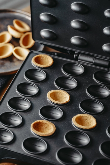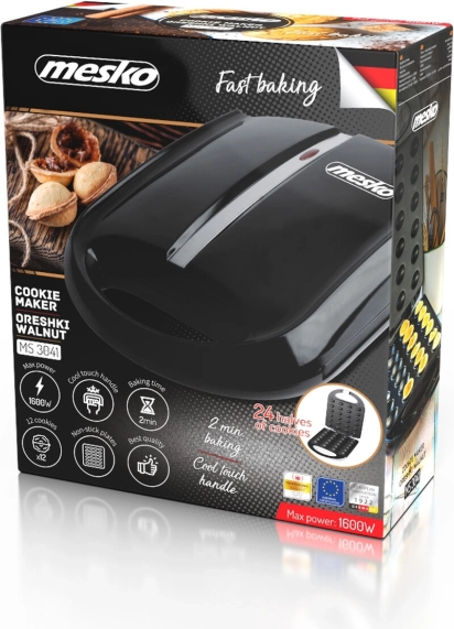 Domácí ořechové sušenky s krémem za 2 minuty? S opékačem MESKO XL to zvládnete kdykoli. Velká pečicí plocha vytváří v jednom cyklu 24 velkých polovinek, které snadno spojíte do plněných oříšků – nasladko i naslano. Nepřilnavé desky zajistí čisté vyjmutí a rychlé čištění.
