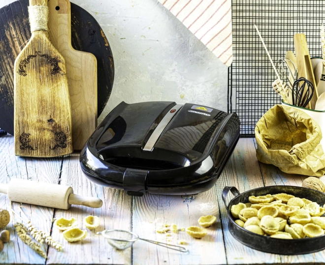 Praktická výbava pro každou kuchyni: termoizolované rukojeti, západka víka pro jistý přítlak, kontrolka provozu a protiskluzové nožky pro stabilitu. Díky vysokému výkonu až 1600 W zvládnete hostům upéct několik dávek během chvilky.