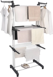 Tři patra se 6 sklopnými rameny a 2 držáky na ramínka pojmou velkou dávku prádla, aniž by zabírala místo v pokoji.