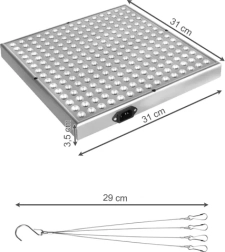 Instalace je rychlá a bez námahy: panel stačí připojit do sítě a zavěsit nad rostliny pomocí dodaných lanek. Kompaktní rozměry 31 × 31 × 3,5 cm a lehká konstrukce usnadňují umístění do skleníku, pěstebního boxu i na domácí parapet.