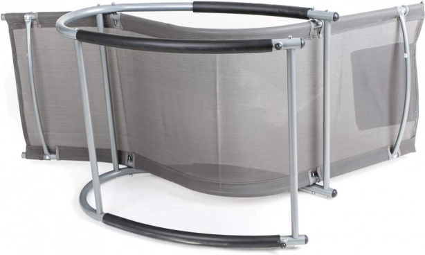 Pevná ocelová konstrukce se silnostěnnými trubkami (30/25/22 mm) poskytuje stabilitu a nosnost až 120 kg. Integrovaný a nastavitelný podhlavník podpírá krční páteř, zatímco jemná houpací mechanika přináší příjemné kolébání pro hlubokou relaxaci.
