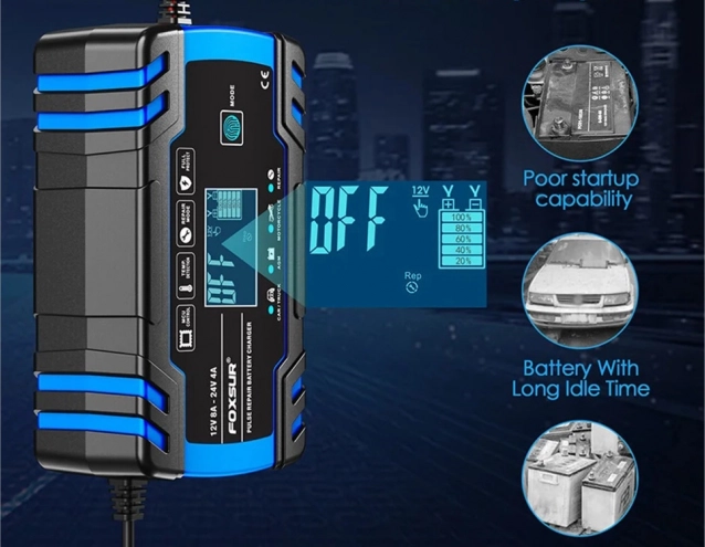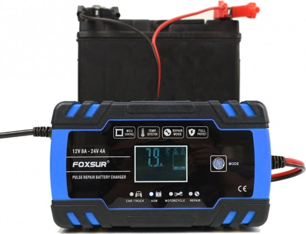 Kompaktní a inteligentní nabíječka pro 12V/24V autobaterie s digitálním displejem a režimem opravy. Poskytuje rychlé a bezpečné nabíjení, nabízí zimní i letní režim, automatickou ochranu a pulzní obnovu pro oživení slabých akumulátorů. Ideální pro auta, motocykly i jiné vozidlové baterie.