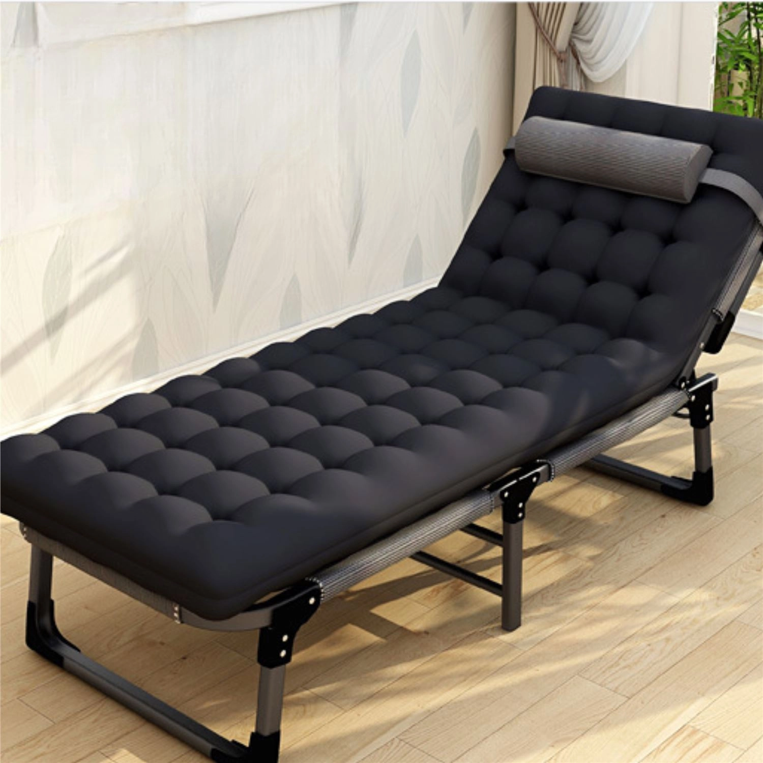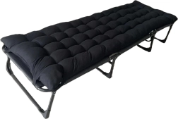 Toto skládací lehátko je ideální jako nouzové lůžko pro hosty, relax v kanceláři i odpočinek při kempování. Robustní ocelový rám se zámkovým mechanismem zajišťuje výjimečnou stabilitu bez nežádoucího kývání, zatímco prodyšný potah z Oxford tkaniny a silná výplň z perlové bavlny poskytují pohodlné ležení.