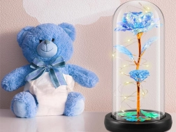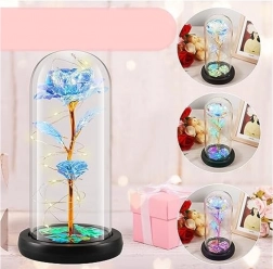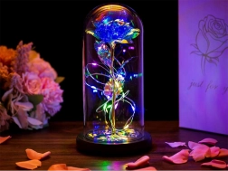 Elegantní dekorace a romantický dárek v jednom: věčná růže pod skleněným kloboučkem s jemným LED podsvícením vytváří kouzelnou atmosféru a chrání květ před prachem. Ideální pro Valentýn, výročí, narozeniny i jako stylový doplněk do interiéru.