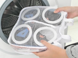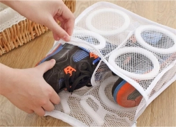 Hustá síťovina a zip chrání obuv před odřením a nárazy, zároveň zabraňují poškození bubnu pračky.