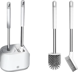 Držák a kartáče jsou v elegantní kombinaci bílé a šedé, což dodává koupelně moderní vzhled a zároveň zajišťuje snadné použití a skladování.