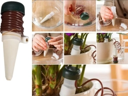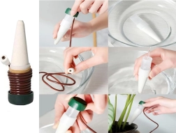 Tento automatický zavlažovací systém je navržen tak, aby vaše rostliny byly neustále hydratované, i když nejste doma. Keramické kužele se nasadí do půdy v květináči a díky chytrému systému postupně uvolňují vodu. Tato metoda je ideální pro ty, kteří nemají čas na denní zalévání rostlin, nebo pro ty, kdo cestují a chtějí si být jisti, že jejich rostliny dostávají potřebnou péči.