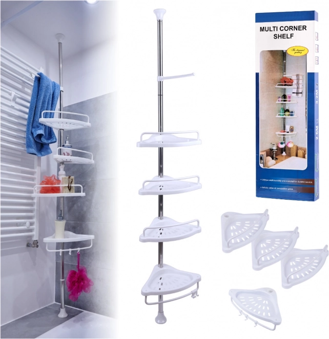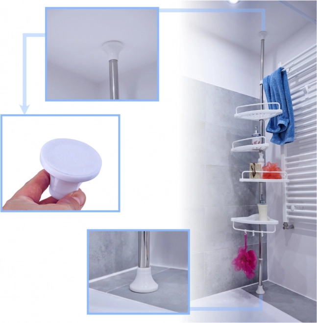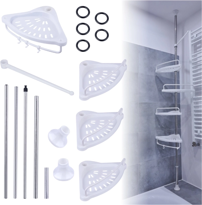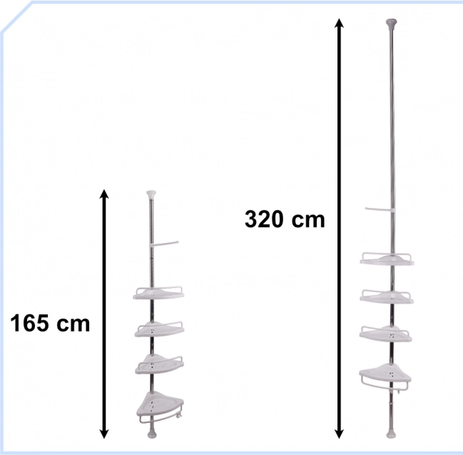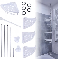 Pro nedostatek místa v koupelně je ideální rohová koupelnová polička, kterou můžete umístit pod sprchový kout bez jakéhokoli nářadí. Poličku jednoduše složíte a umístíte na požadované místo. Teleskopická konstrukce umožní, aby se dokonale vešla do vaší koupelny!