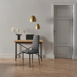 Šedé čalounění a jednoduché černé kovové nohy dodávají židlím elegantní a moderní vzhled.