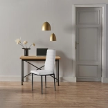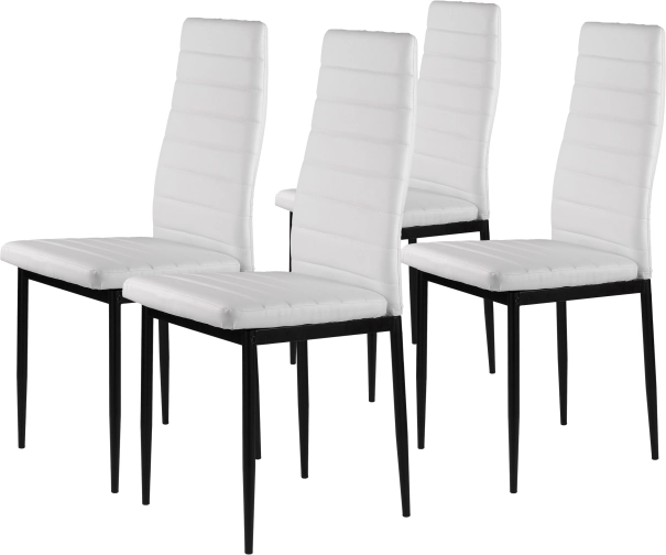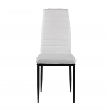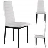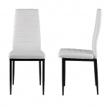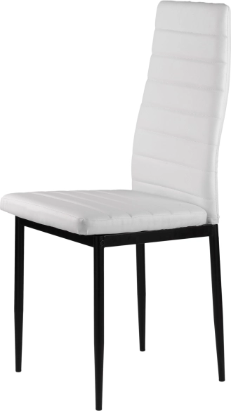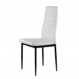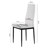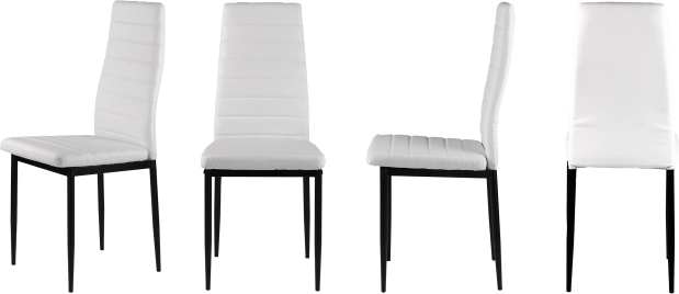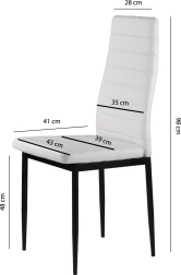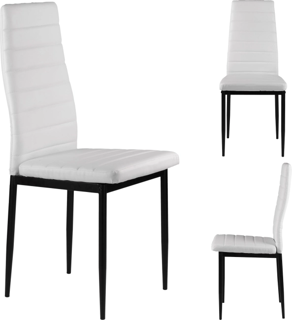 Elegantní bílé čalounění z eko kůže v kombinaci se subtilními černými, práškově lakovanými nohami vytváří nadčasový kontrast, který se hodí do moderních jídelen, kuchyní i pracovních koutů. Díky vysokému opěráku a kvalitní PU pěně jsou židle pohodlné a ergonomické, ideální pro každodenní používání.