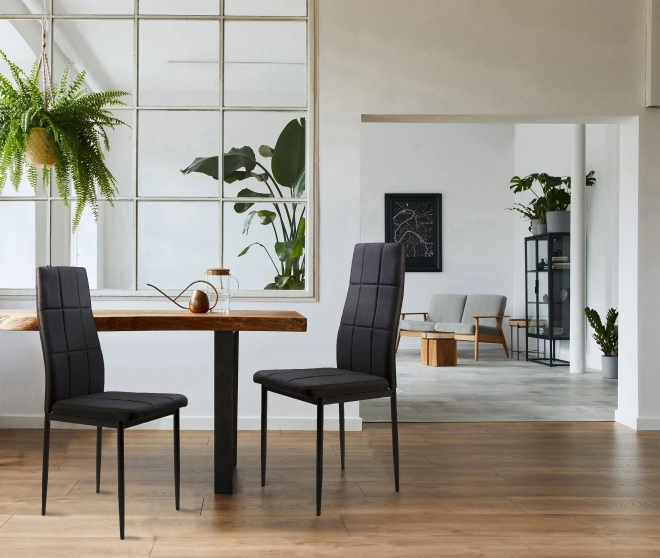 Díky kovovým nohám a čalouněnému sedáku z měkké textilie, tyto židle spojují moderní vzhled s dlouhou životností.