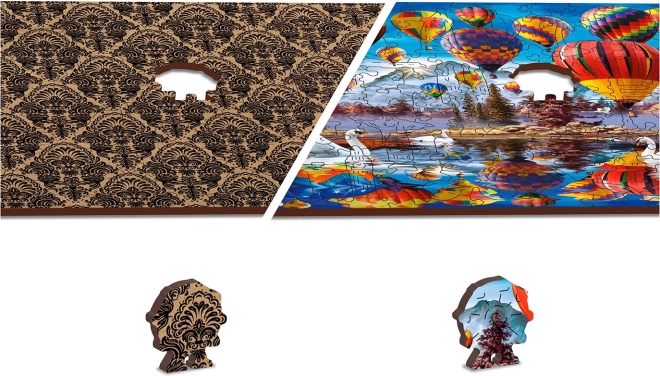 Objevte kouzlo skládání s dřevěným oboustranným puzzle, které přináší vyšší obtížnost, unikátně tvarované dílky a ekologické balení bez plastu. Laserem přesně vyřezávané dílky ze silné HDF desky zaručují hladké hrany, perfektní dosednutí a dlouhou životnost. Užijte si zábavu 2v1 – z lícové strany krásný motiv s horkovzdušnými balóny nad krajinou, z rubu pak vzor pro skládání podle tvaru.