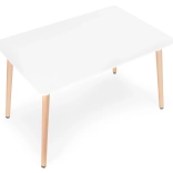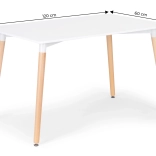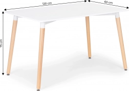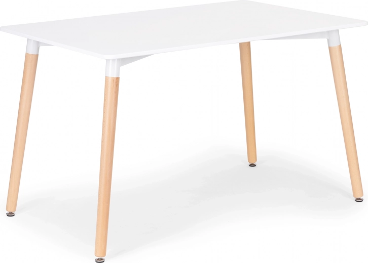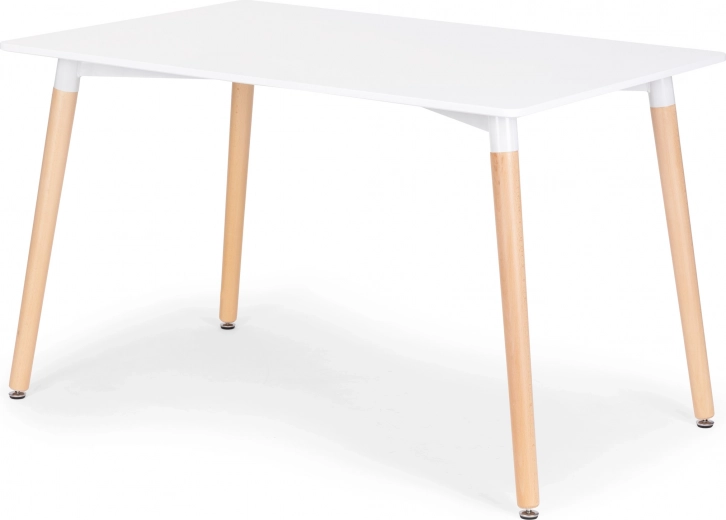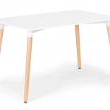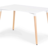 Moderní stůl ModernHome je ideální volbou do jídelny, kuchyně, domácí kanceláře i kavárny. Minimalistická kombinace matně bílé desky a přírodních dřevěných nohou podtrhuje čistý skandinávský vzhled, který se snadno ladí s ostatním nábytkem. Kovový rám pod deskou posiluje konstrukci a zajišťuje dlouhou životnost a stabilitu.