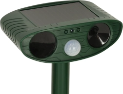Tento odpuzovač má provozní dosah 6 až 8 metrů, takže pokryje velké plochy jako zahrady, sady či rekreační areály. Je vyroben z odolného plastu v zelené barvě, který splyne s okolním prostředím a je odolný vůči všem povětrnostním podmínkám.