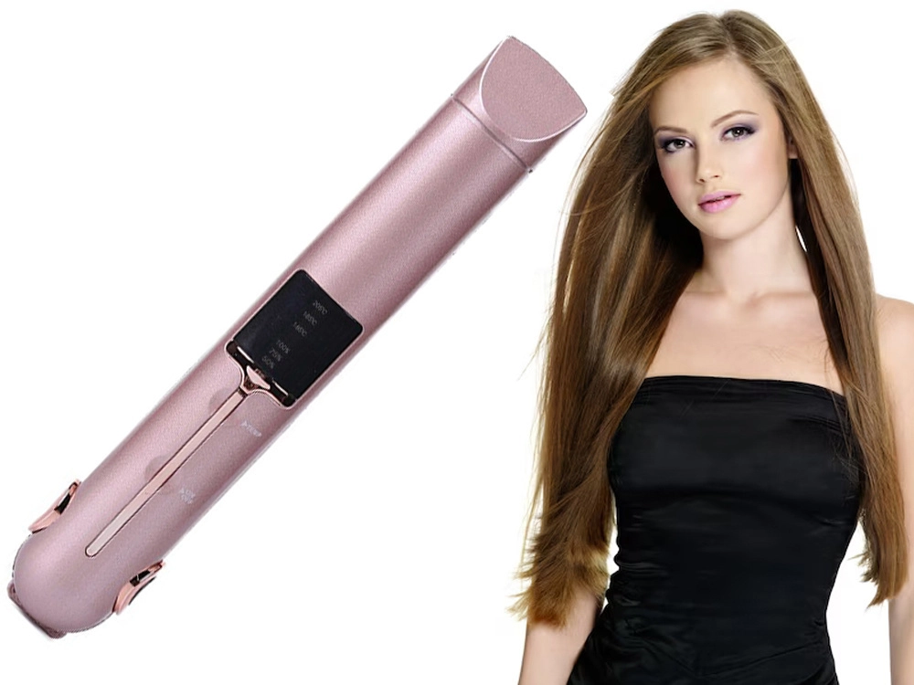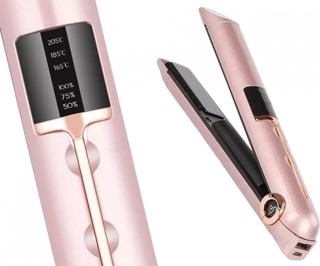 Kompaktní bezdrátová žehlička na vlasy s keramickými destičkami a LCD displejem pro rychlé a šetrné úpravy kdekoliv. Nabízí 3 úrovně teploty 165/185/205 °C, rychlý ohřev, univerzální styling 2v1 (rovnání i vlny) a praktickou funkci powerbanky pro dobití telefonu. Ideální na cesty díky USB‑C nabíjení a kompaktním rozměrům.