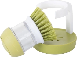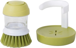 Praktický kartáč na nádobí s integrovaným dávkovačem saponátu a stabilním stojanem pro čistou a přehlednou kuchyň. Stiskem horního tlačítka se uvolní přesné množství prostředku, takže je mytí rychlé a hygienické. Díky hustým štětinám snadno odstraní odolné nečistoty a připáleniny, zatímco odkapávací stojan udrží pracovní plochu bez loužiček.