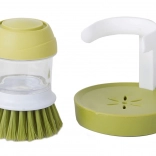 Kartáč na nádobí s dávkovačem a odkapávacím stojánkem – Zelená