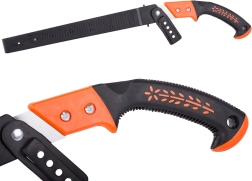 Tato ruční zahradní pila je spolehlivý pomocník pro údržbu stromů a keřů. Ostré zuby zajišťují rychlý a čistý řez i u silnějších větví, zatímco tvarovaná protiskluzová rukojeť snižuje únavu rukou a zvyšuje kontrolu nad řezem. Díky kompaktním rozměrům a nízké hmotnosti ji snadno přenesete i uskladníte.