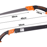 Praktická zahradní pila pro rychlé a přesné prořezávání větví. Nabízí odolnou čepel, ergonomickou protiskluzovou rukojeť a ochranné pouzdro s poutkem na opasek pro bezpečné nošení a snadné použití na zahradě i v sadu.