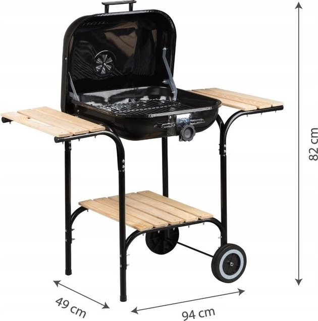 Užijte si dokonalé grilování s velkým zahradním grilem s nastavitelným roštem a dřevěnými poličkami. Perfektní pro domácí zahrady a terasy, s praktickými funkcemi pro snadné ovládání.
