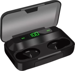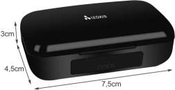 SPECIFIKACE- displej: LCD; připojení: Bluetooth 5.1; funkce powerbanky v pouzdře: ano; dosah: 10 m; baterie sluchátek: 50 mAh; powerbanka: 2200 mAh; doba nabíjení: 2 h; doba přehrávání hudby: 5 h; rozměry: 4,5 x 7,5 x 3 cm; hmotnost: 0,09 kg; hmotnost v balení: 0,112 kg.