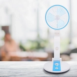Udržujte si příjemné klima kdekoli. Tento skládací bezdrátový ventilátor v elegantní modré barvě kombinuje výkonné, ale tiché chlazení s užitečným LED světlem. S plynulou regulací rychlosti snadno přizpůsobíte proudění vzduchu aktuálním potřebám – od jemného vánku po intenzivnější osvěžení.