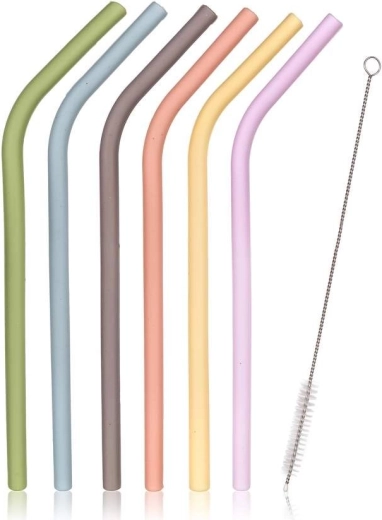 Tato sada obsahuje šest silikonových brček v pastelových barvách s přiloženým kartáčkem pro snadnou údržbu.