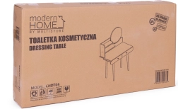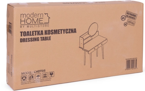 Moderní toaletní stolek je navržen tak, aby se stal výrazným prvkem každé ložnice nebo šatny. Díky jeho prostorným zásuvkám a policím budete mít všechny potřebné kosmetické přípravky a doplňky na dosah ruky. Stolek je opatřen kulatým zrcadlem o rozměrech 40x40 cm, které zajišťuje pohodlí při každodenní aplikaci make-upu.