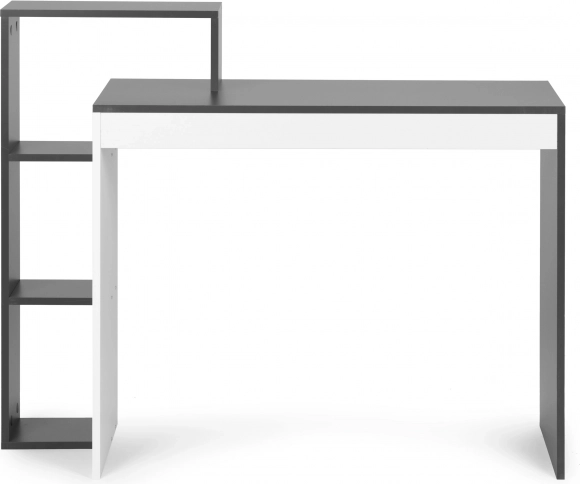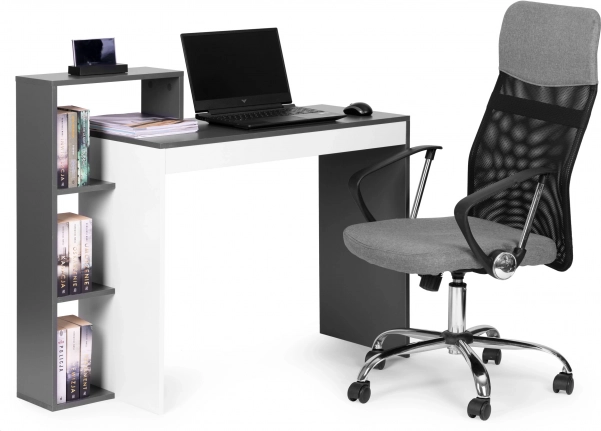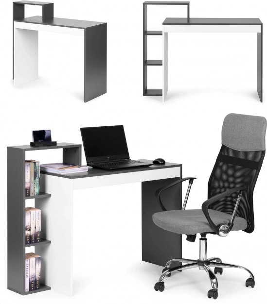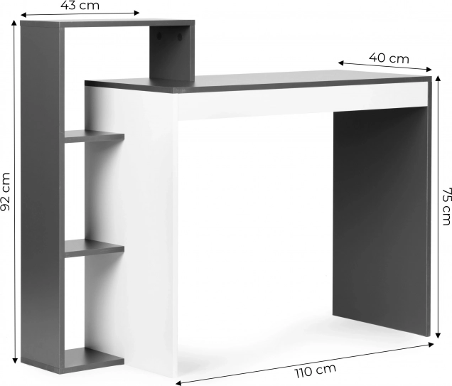 Stůl disponuje pracovní plochou 90x40 cm, umístěnou ve výšce 75 cm. Na levé straně se nacházejí 4 funkční police (20x18 cm), které snadno pojmou knihy, šanony a další věci, které potřebujete mít po ruce.