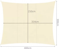 Obdélníková sluneční plachta 4 × 3 m v elegantní béžové barvě poskytuje spolehlivé stínění a ochranu před UV zářením. Díky voděodolné tkanině s gramáží 180 g/m² rychle schne, odolává vlhkosti a plísním a současně umožňuje cirkulaci vzduchu. Ideální pro zahradu, terasu, balkon i kemping – s pevnými nerezovými D-kroužky a šňůrami pro snadnou montáž.