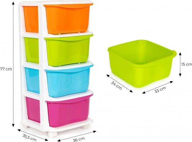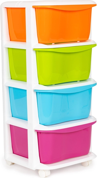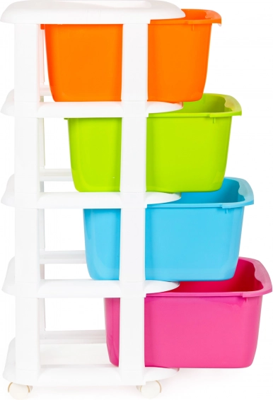 Úložný organizér na kolečkách nabízí funkční a praktické řešení pro snadné uspořádání věcí. Hodí se zejména do dětských pokojů nebo koupelen.