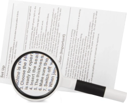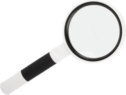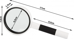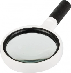 Praktická ruční lupa s průměrem čočky 65 mm a zvětšením 6× pro pohodlné čtení drobného písma i detailní kontrolu předmětů. Lehká a odolná konstrukce s protiskluzovou rukojetí, čirá skleněná čočka a černo-bílé provedení pro univerzální použití doma, v kanceláři i v dílně.