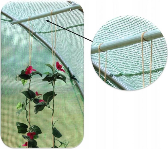 Šest bočních vyklápěcích/rolovacích oken s moskytiérou umožňuje regulovat cirkulaci vzduchu, snižuje riziko plísní a podporuje zdravý růst. Široké rolovací dveře na zip zajišťují pohodlný vstup s nářadím. Zemní límec určený k zasypání zeminou zvyšuje ukotvení a omezuje průvan.