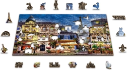 Zábava při skládání dřevěných puzzle WOODEN CITY je zaručena díky jejich speciálně tvarovaným dílkům, které nabízejí unikátní skládací zážitek. Prvky puzzle zahrnují dílky ve tvaru zvířat, staveb a předmětů, které lze použít jako malé figurky. Oboustrannost puzzle umožňuje skládání jak podle obrázku, tak podle tvaru, což poskytuje větší výzvu.