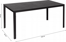 Rozměry 156 × 78 × 74 cm nabízejí dost místa pro rodinné večeře i zahradní oslavy. Elegantní černá se snadno kombinuje s různými židlemi.
