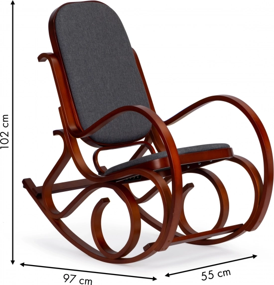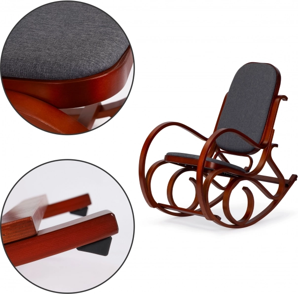 Promyšlená konstrukce je navržena pro stabilní a plynulé houpání. Speciální koncové „nožky“ na lyžinách zabraňují přílišnému překlopení, takže si můžete dopřát bezpečný relax. Odolná textilie je příjemná na dotek a snadná na údržbu, aby vám křeslo dlouho dělalo radost.