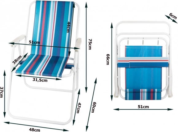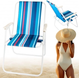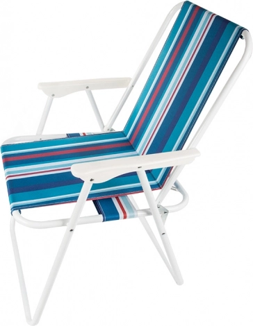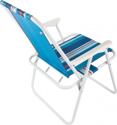 Tato skládací plážová židle kombinuje nízkou hmotnost, snadné přenášení a osvědčené pohodlí. Práškově lakovaný ocelový rám zajišťuje stabilitu, zatímco odolná textilie sedáku a opěradla je příjemná na dotek a snadno se čistí. Pohodlné područky podporují relax i při delším sezení.