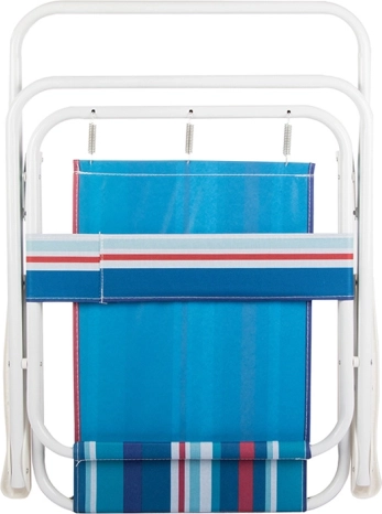 Židle se skládá naplocho, takže nezabere téměř žádné místo v kufru auta, karavanu ani v plážové tašce. Rozložení je otázkou vteřin – stačí ji otevřít a můžete odpočívat.