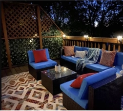 Kombinace polyesteru a PP zajišťuje dlouhou životnost a odolnost vůči povětrnostním vlivům na balkonech, terasách i zahradách.