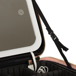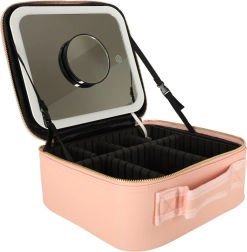 Praktický cestovní kufřík na kosmetiku s integrovaným LED zrcátkem a 10× zvětšením pro dokonalé líčení kdekoliv. Nabízí prostorný interiér, nastavitelné přepážky pro přehlednou organizaci, pevnou konstrukci pro bezpečné uložení a dobíjecí baterii s 3 režimy osvětlení pro perfektní viditelnost.