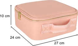 Růžový kosmetický kufřík je ideální na cestování i každodenní používání. Díky LED zrcátku s dotykovým ovládáním a 10× zvětšovacím zrcátkem upravíte make-up přesně i v horších světelných podmínkách. Vnitřní přestavitelné přihrádky a kapsa na štětce či rtěnky udrží vše dokonale uspořádané.