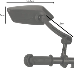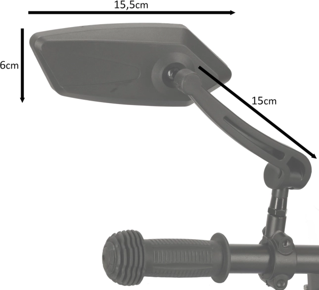 Zrcátka mají délku ramene 15 cm, což umožňuje široký výhled, a jejich rozměry jsou 15,5 cm x 6 cm. Vysoce kvalitní plastové zpracování zajišťuje jejich dlouhou životnost.