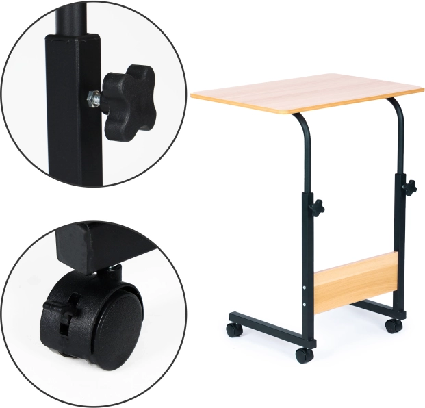 Mobilní stůl na notebook od značky ModernHome nabízí bezkonkurenční pohodlí a flexibilitu pro práci nebo relaxaci v každé místnosti vašeho domova. Díky kolečkům s aretací jej snadno přemístíte a zajistíte stabilitu. Výškově nastavitelná konstrukce vám umožní přizpůsobit stůl přesně podle vašich potřeb a zajišťuje ergonomické pohodlí.